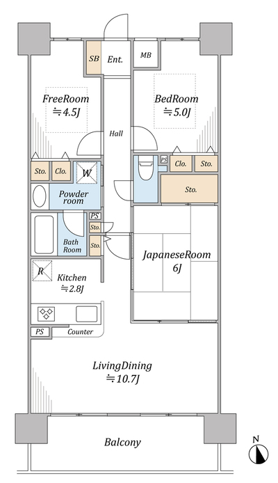 南向きバルコニーからは明るい光が入り、リビングを中心とした開放的なプランニングもご検討いただけます。