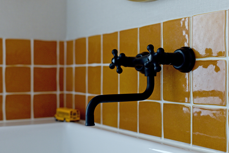 洗面部分は、カラーと形状が特徴のタイルをセレクト。