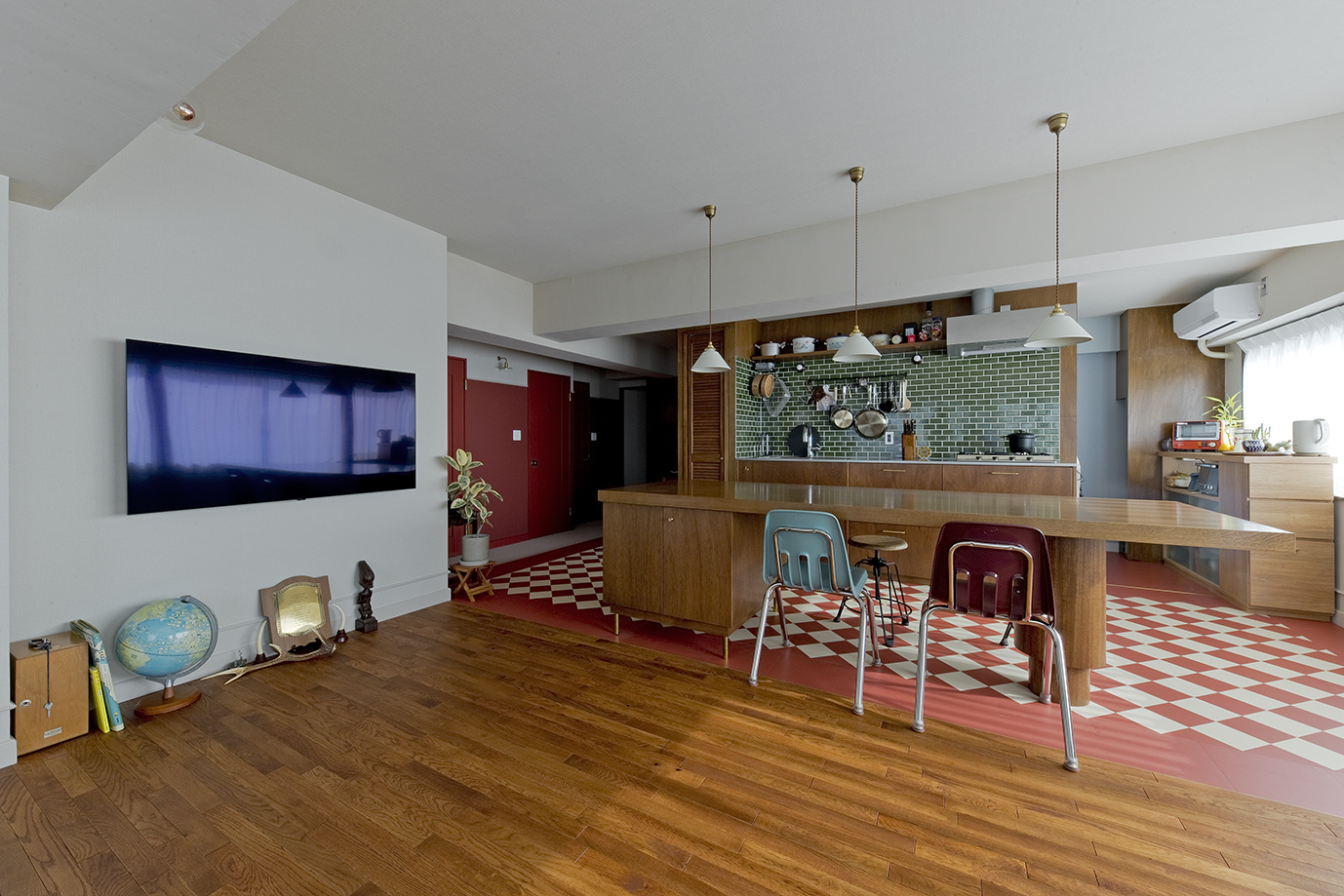 個性たっぷりの床は、レトロなデザインで住まいのアイコンに。