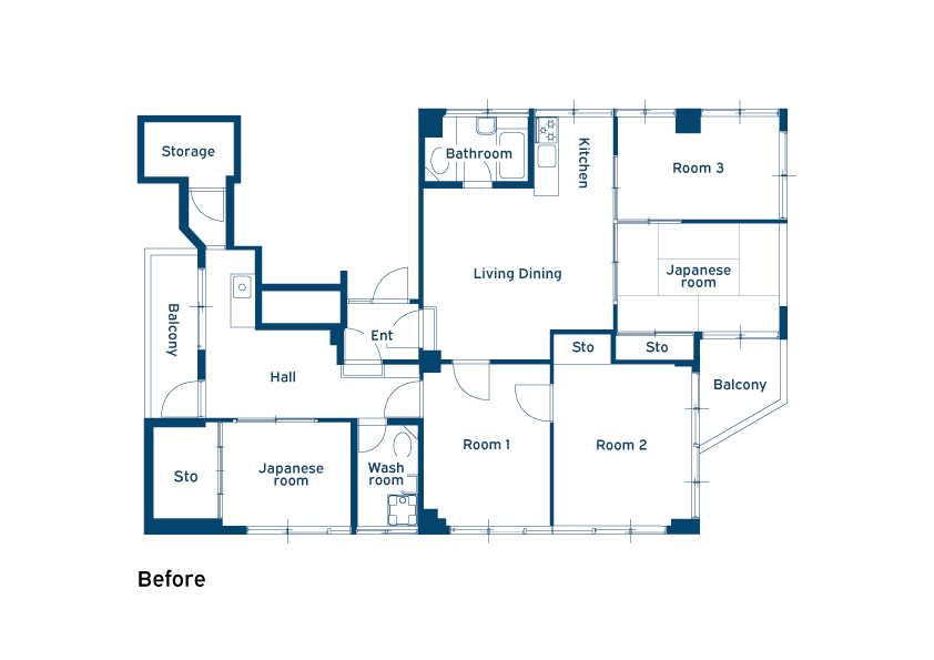 ご希望は、お家の個性的な形を活かした、新たな概念の間取り。