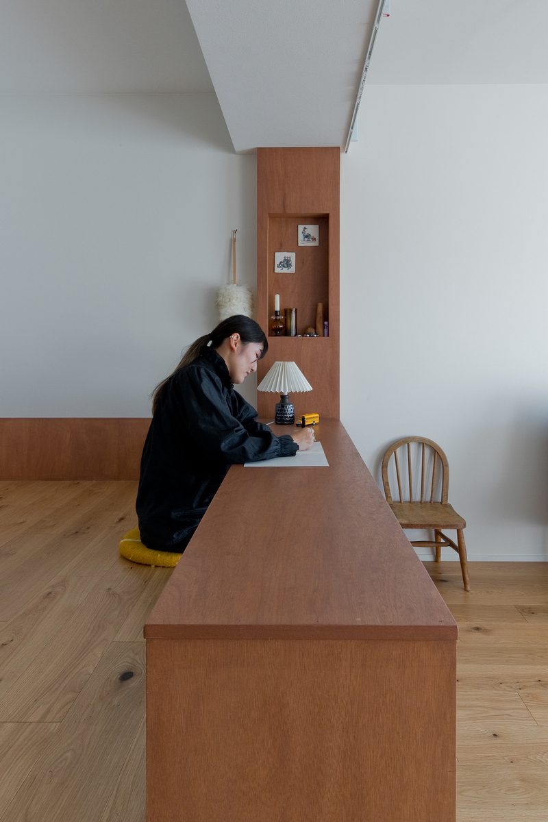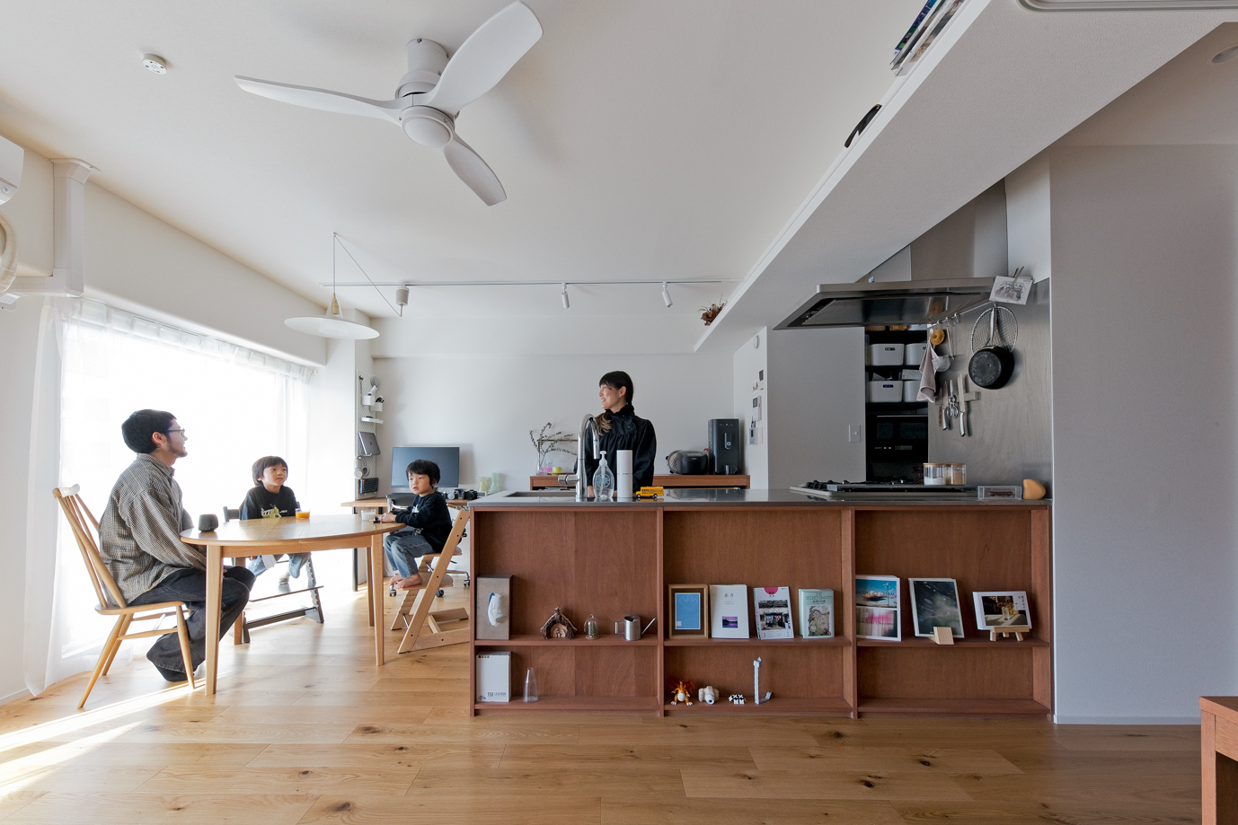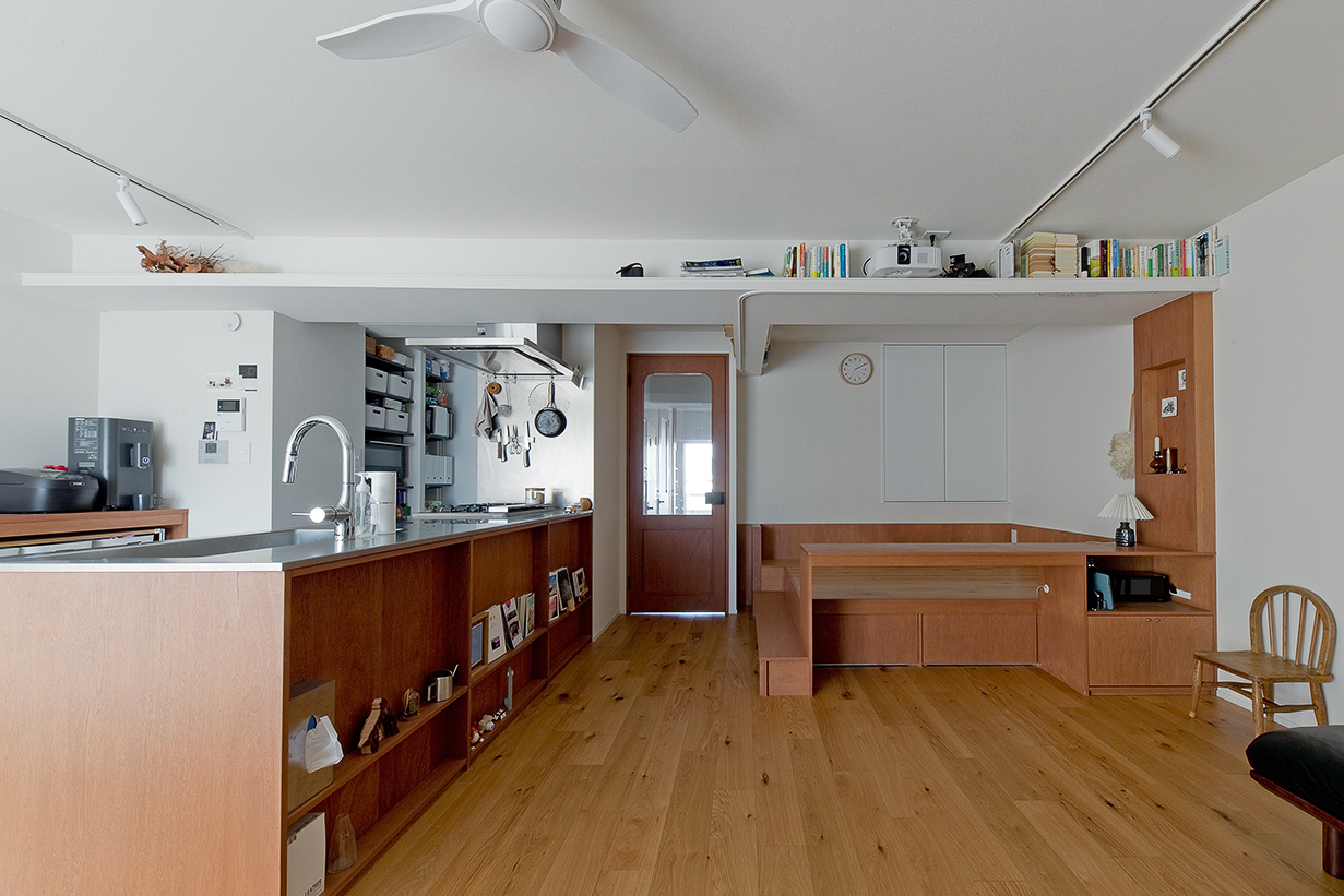 現在はお子様の遊びや勉強、奥様の書き物まで、日常のさまざまなシーンに対応できる多目的空間として、収納やデスクを組み込み機能性を高めました。
