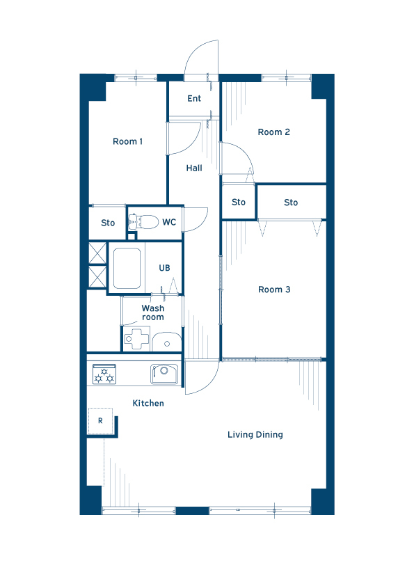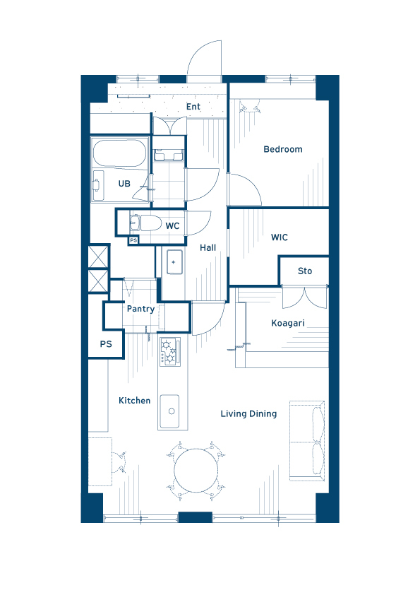 バルコニー側の窓には、ドレープカーテンの代わりにロールスクリーンを設置。