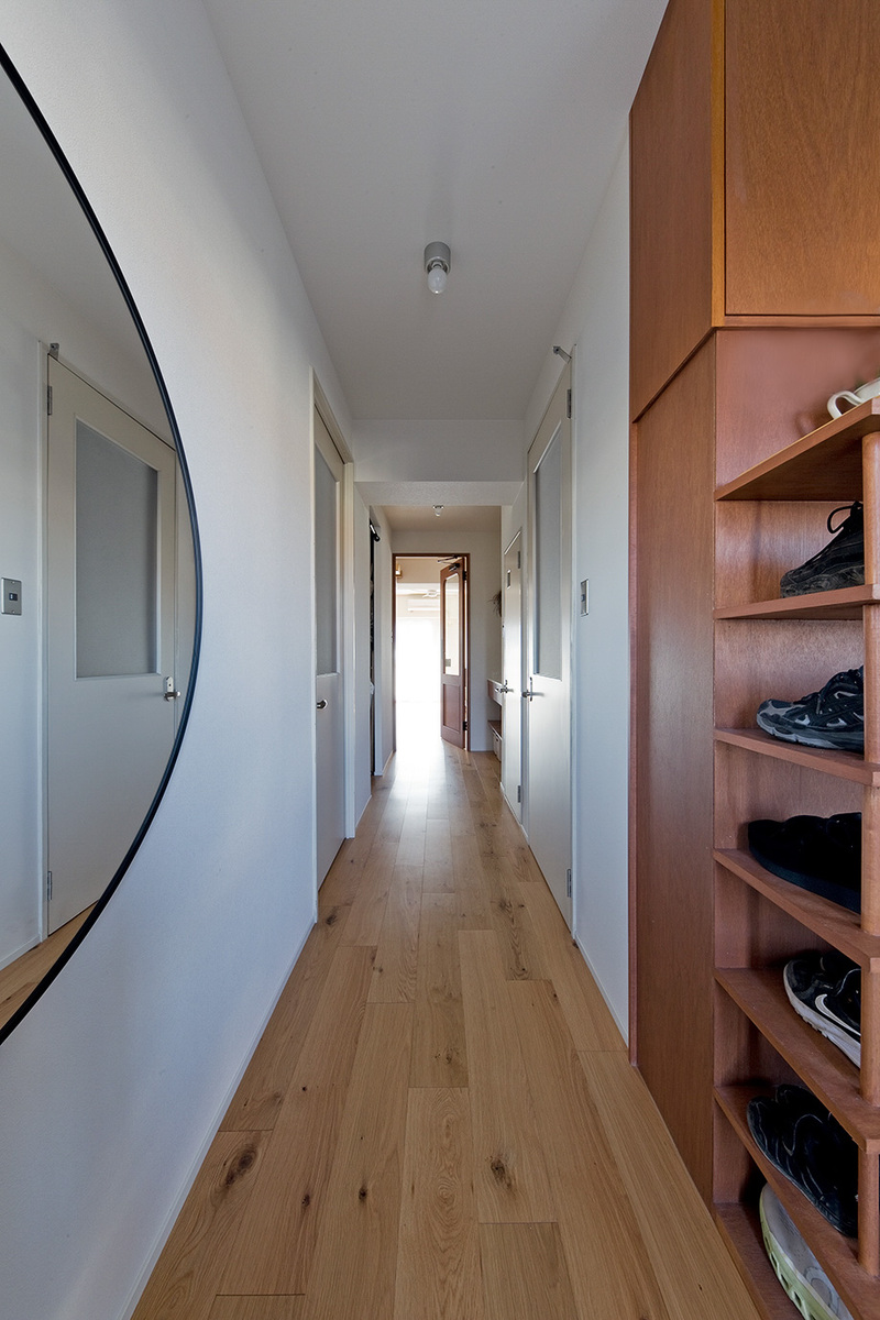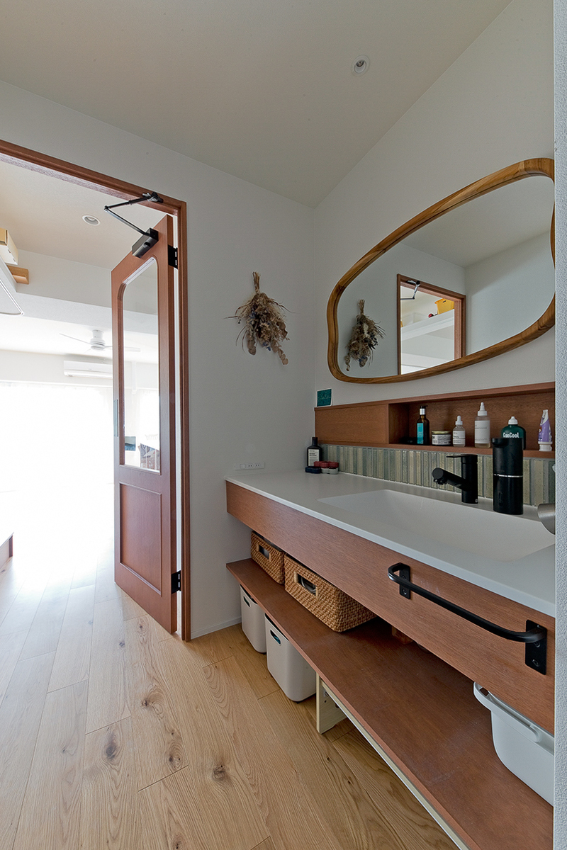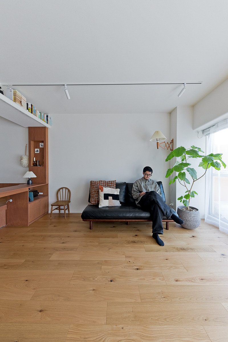 フローリングには、木材の質感を感じられるよう節の表情が豊かなオーク材をセレクト。