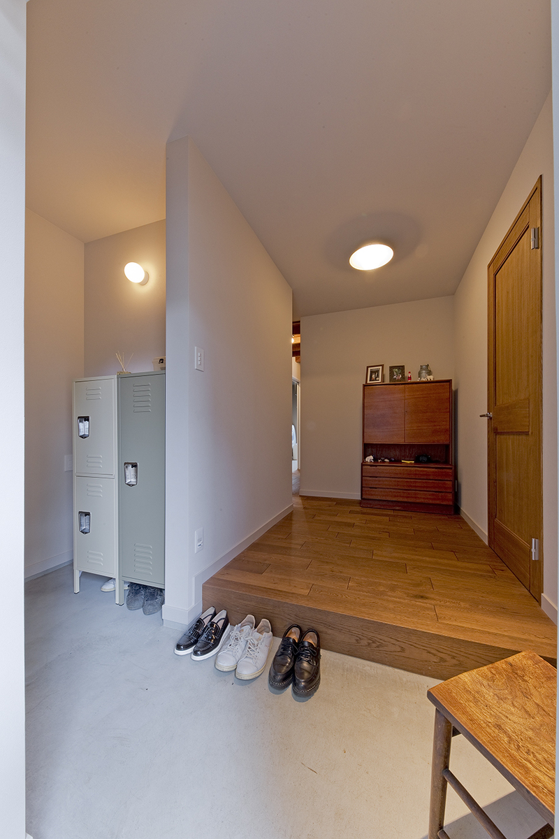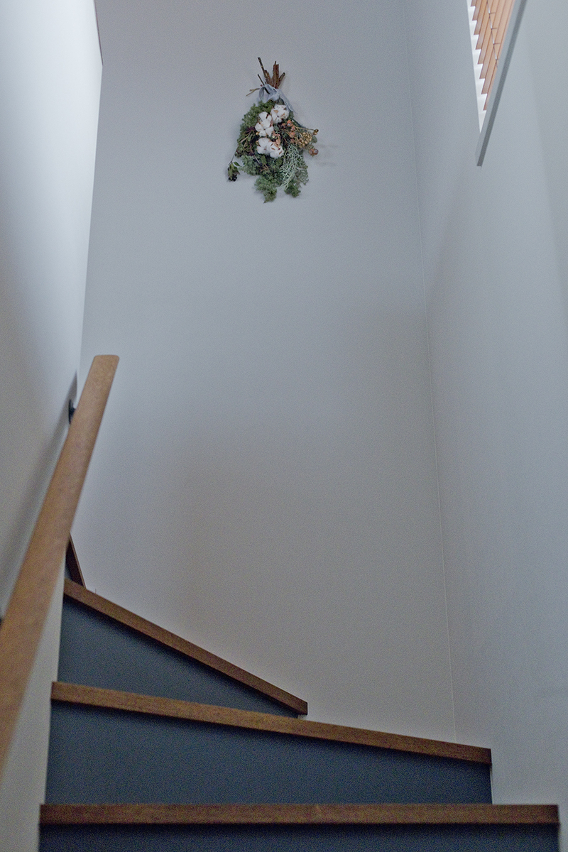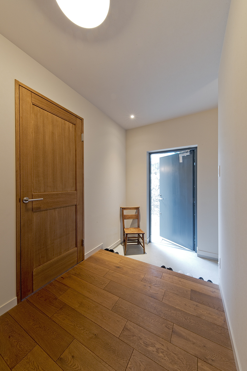 玄関ドアにもブルーを採用し、住まい全体に統一感を持たせた印象的な仕上がりとなりました。