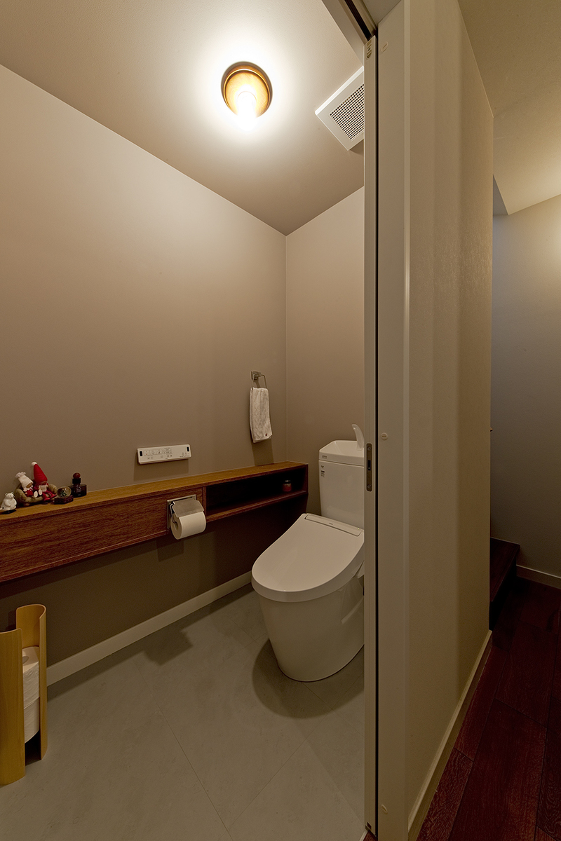 「2階リビング」「海外風のキッチン」「ゆとりのある個室」などがT様の新しい住まいでのご希望。それぞれの空間にしっかりと想いを込めながら、温かみのあるトーンで統一された住まいを計画しました。