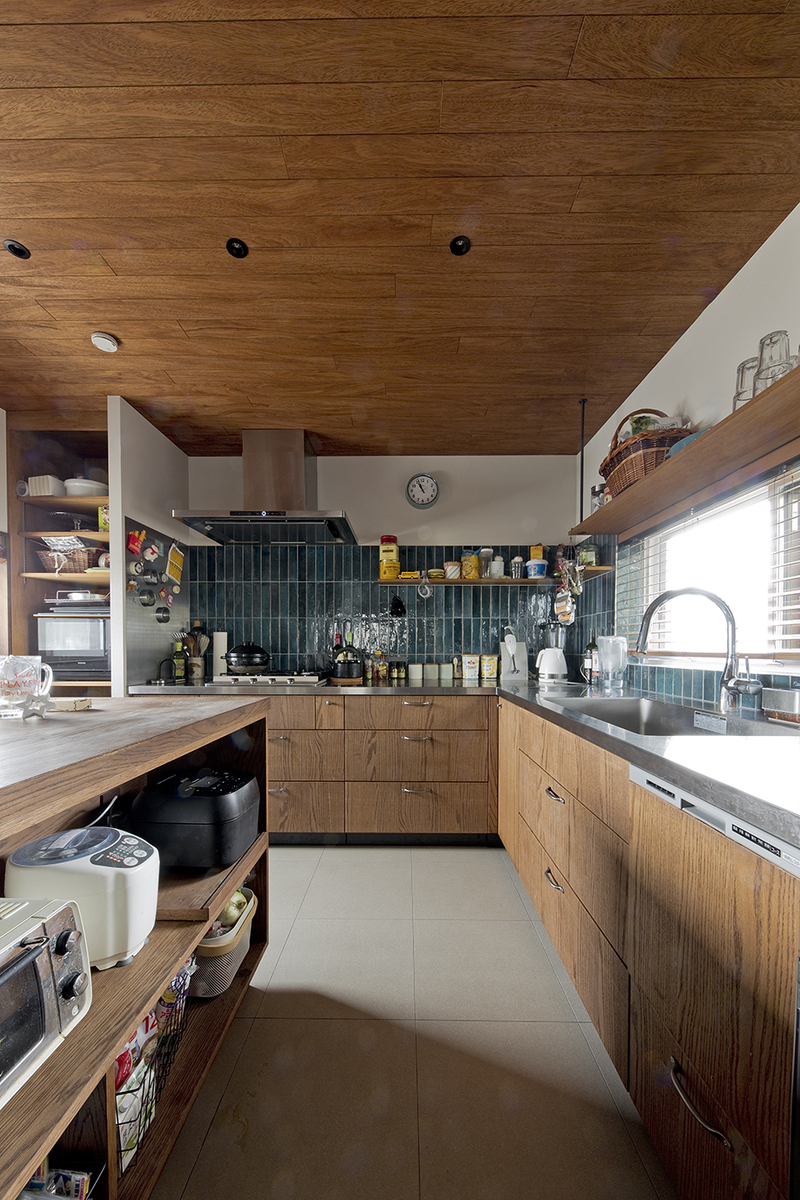 ステンレスとタイルの組み合わせが、空間にほどよい抜け感をもたらします。