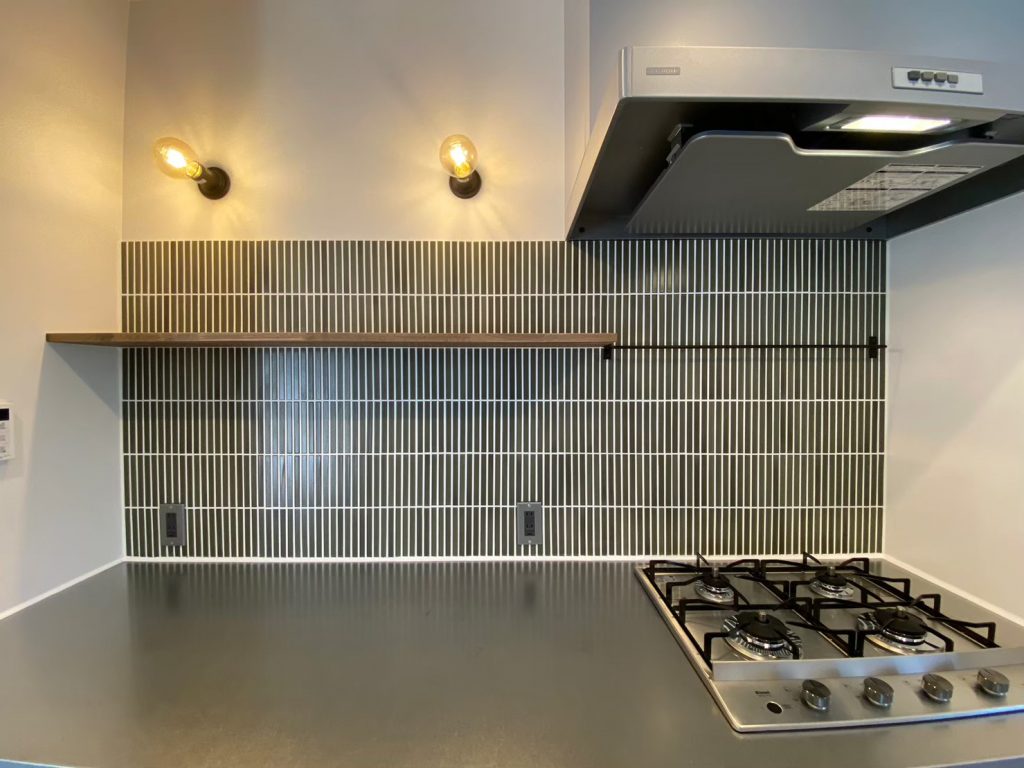 壁に馴染みのよいカラータイルをセレクトしてシンプルながらおしゃれな印象に。