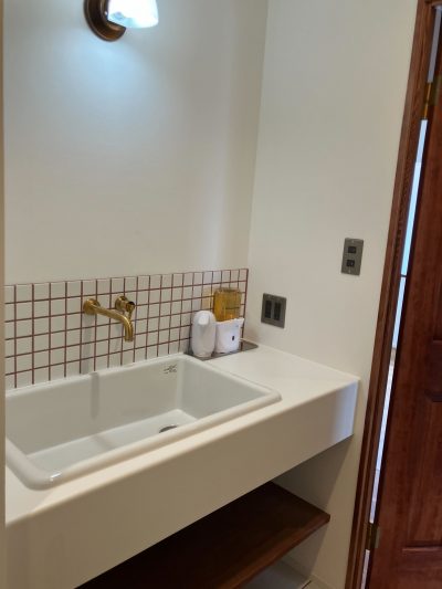 洗面台は、ホワイトでまとめクリーンな印象に。