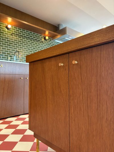 キッチンの壁面のカラータイルも絶妙なカラートーンで、派手すぎない落ち着きのある空間に仕上がりました◎