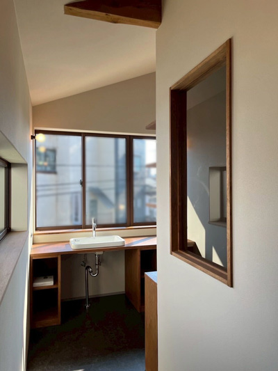 日当たりのいい場所には、身支度のできる洗面台兼デスクを設置。