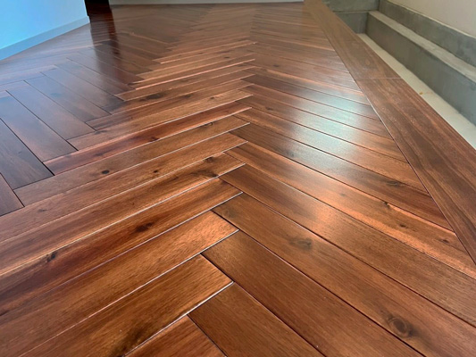 LDK・廊下の床部分には、M様ご希望の「ヘリンボーン」を採用。