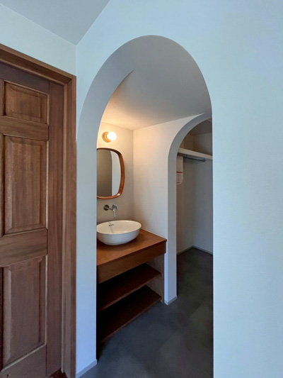 洗面化粧台は、玄関部分との統一感を意識しムードのある空間になるようデザイン。