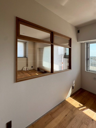 室内窓の奥には、ワークスペースも確保しています。