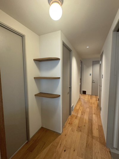 リビングドアを広げたことで、廊下も開放的に生まれ変わりました♩