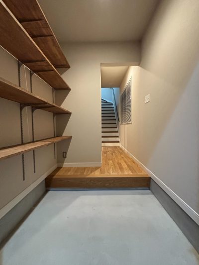 玄関は、ベビーカーを置くことのできる広々した空間に。