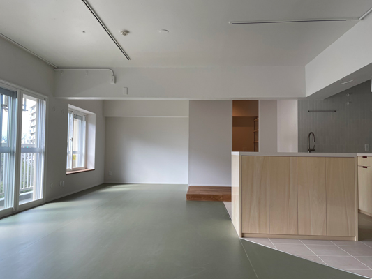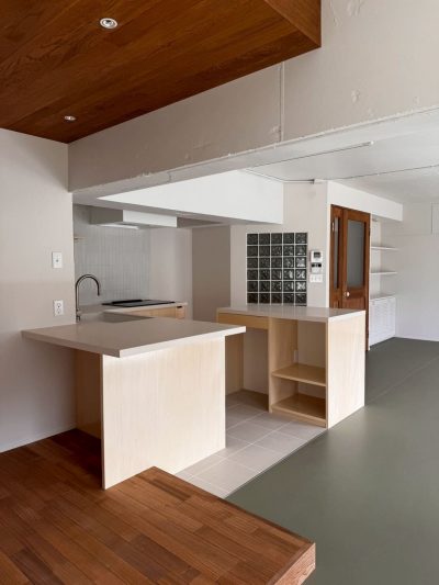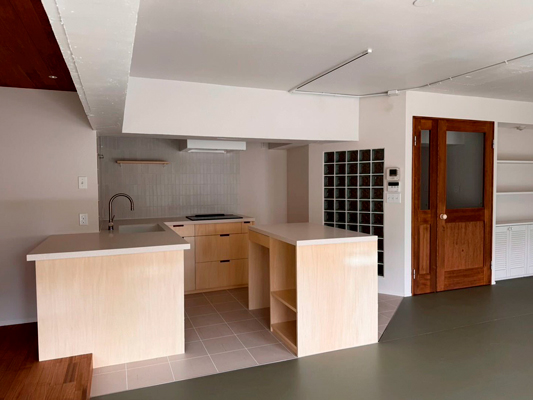 キッチンは、位置を大きく変更しLDKに取り込んでいます。