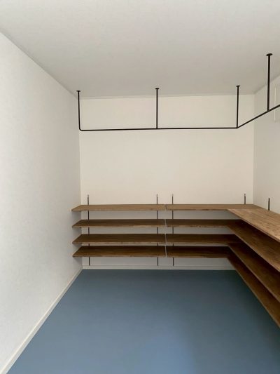 アイアンバーと可動棚を組み合わせることで、かける収納・置く収納どちらもたっぷり確保した充実のプランです👔
