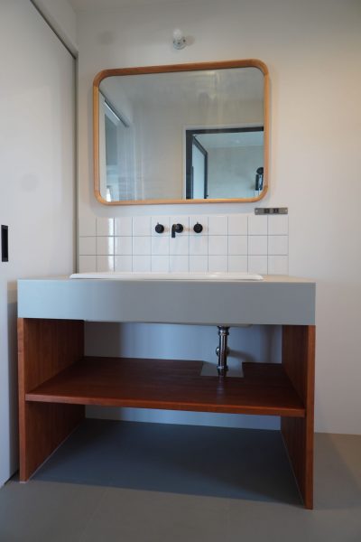 洗面台は造作で抜け感のある雰囲気に仕上げました◎