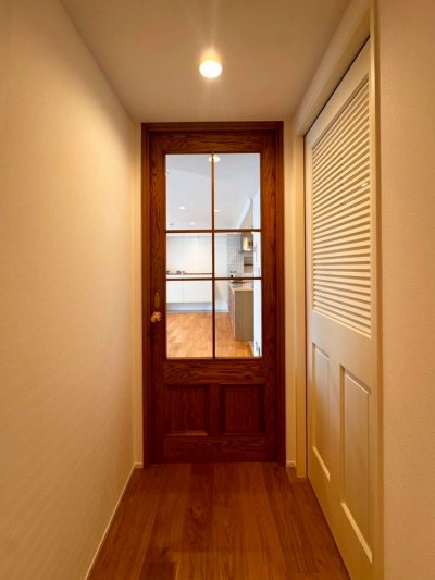 木材の感じが強く出るオーク材の板目を採用し、少しハードな雰囲気をプラスしています🚪