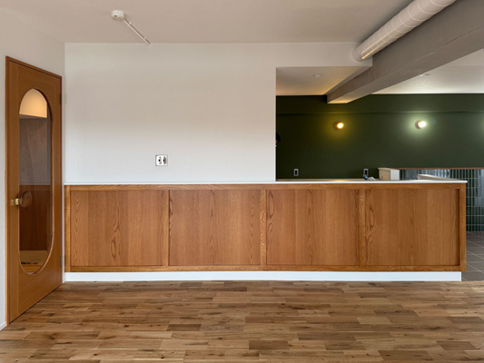 木と深いグリーンのカラーコーディネートで「ミッドウエスト」を意識したデザインに。