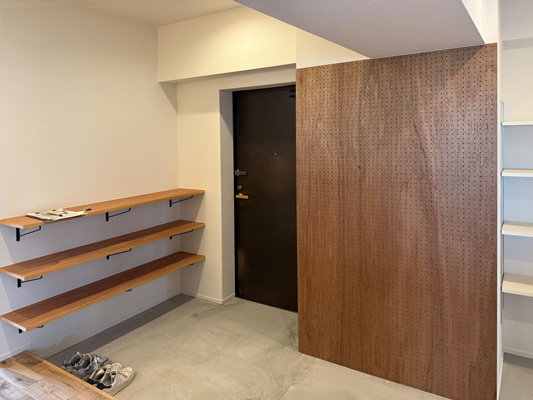 有孔ボードはご夫婦揃ってお好きな帽子をディスプレイされるご予定💭