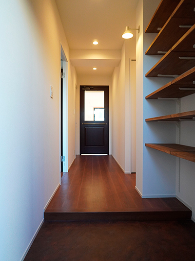 玄関は下足入れをとっぱらい、オープンな可動棚に変更。